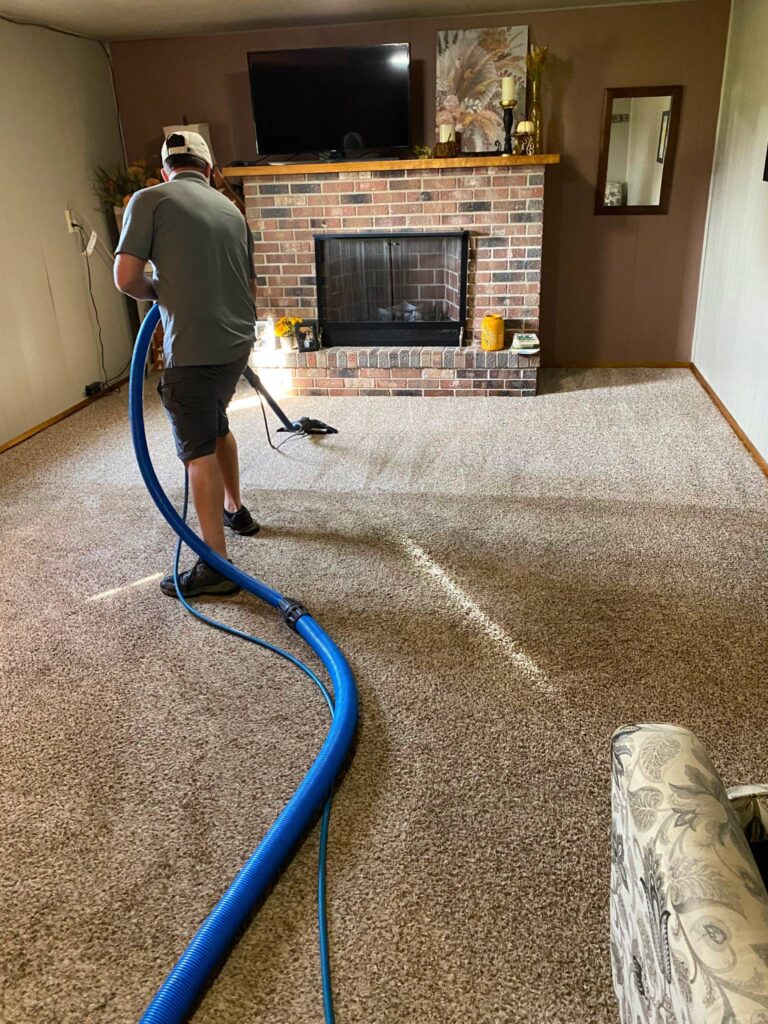Using a multi-step thorough cleaning process using a truck mounted carpet cleaning unit. The powerful unit stays in the vehicle while the cleaning technician brings in two hoses and various tools to clean. Depending on the level of rinsing needed the dry times can vary, but tend to be between 4-8 hours.This is the most thorough cleaning method and is renowned as the industry standard of clean carpet.